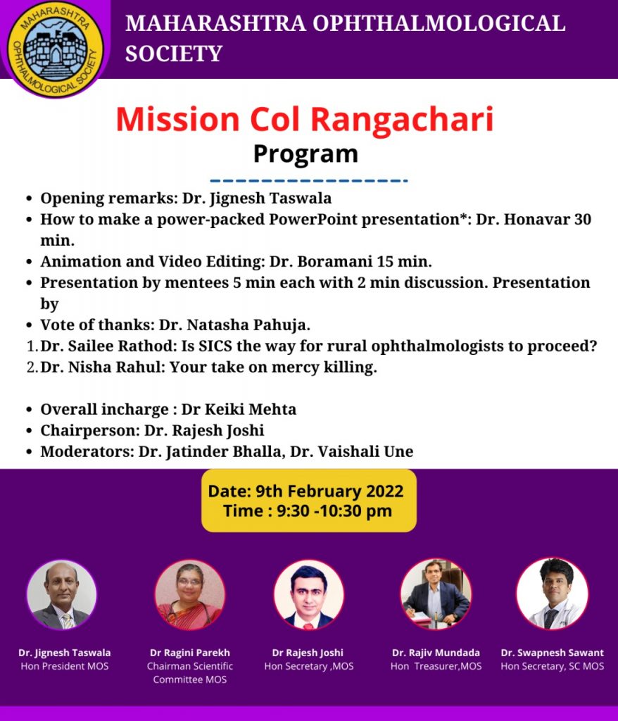 BECOME A MEMBER Member Profile Update Newsletter Constitution & Bye Laws Webinars Past Webinars FIRECRACKERS INJURY AWARENESS PATIENT EDUCATION MOPS MOS JOURNALS Firecrackers Injury Awareness Patient Education MOPS MOSCON 2023 Certificates Member Profile Update Become a Member MOS Journals Constitution & Bye Laws 09/Feb/2022: Mission Col Rangachari meet Home > Pages > Events > MOS Activities – 2021-22 > 09/Feb/2022: Mission Col Rangachari meet