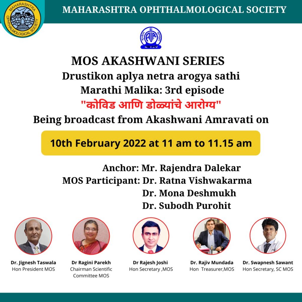 BECOME A MEMBER Member Profile Update Newsletter Constitution & Bye Laws Webinars Past Webinars FIRECRACKERS INJURY AWARENESS PATIENT EDUCATION MOPS MOS JOURNALS Firecrackers Injury Awareness Patient Education MOPS MOSCON 2023 Certificates Member Profile Update Become a Member MOS Journals Constitution & Bye Laws 10/Feb/2022 : Akashwani 3rd episode on covid and eye health Home > Pages > Events > MOS Activities – 2021-22 > 10/Feb/2022 : Akashwani 3rd episode on covid and eye health