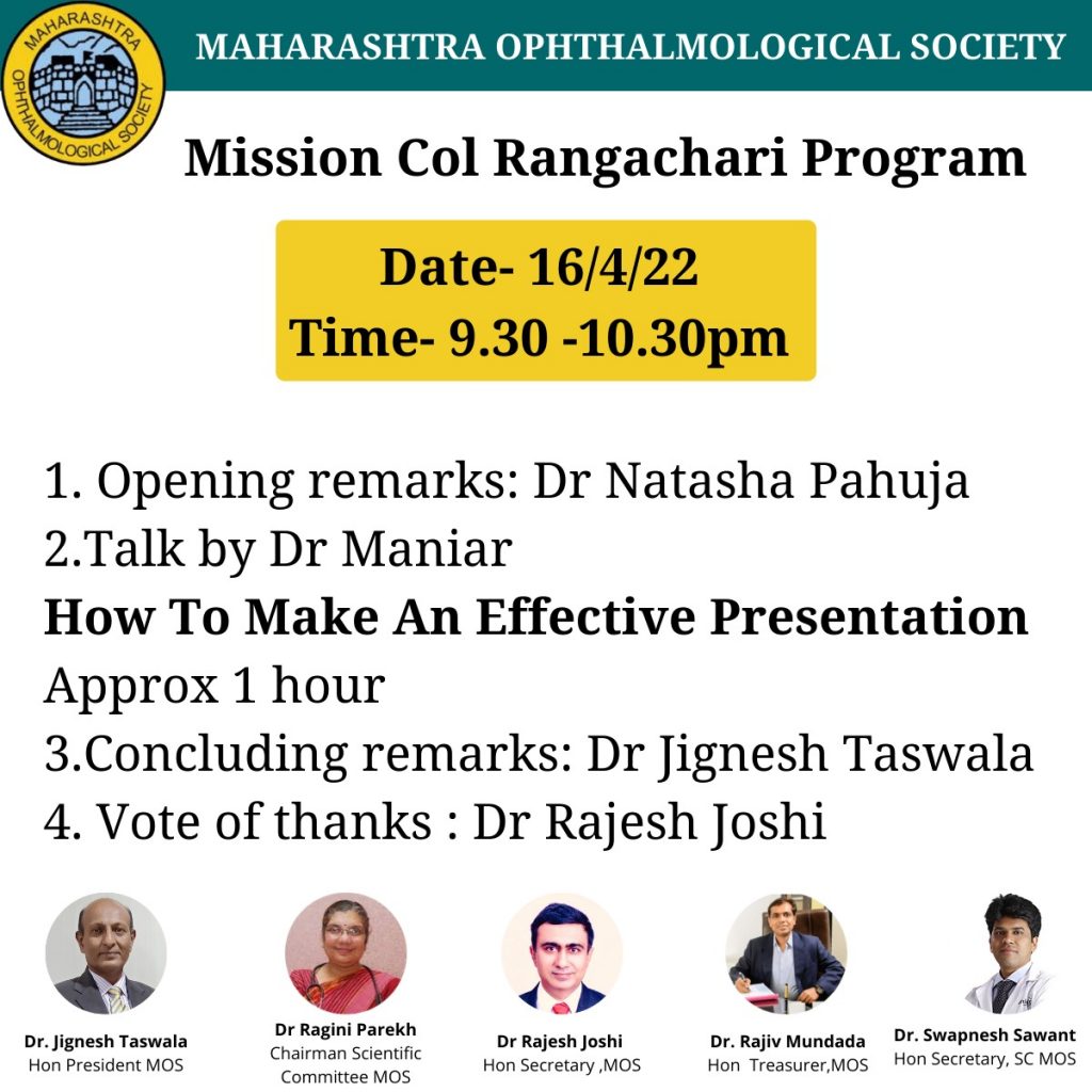 BECOME A MEMBER Member Profile Update Newsletter Constitution & Bye Laws Webinars Past Webinars FIRECRACKERS INJURY AWARENESS PATIENT EDUCATION MOPS MOS JOURNALS Firecrackers Injury Awareness Patient Education MOPS MOSCON 2023 Certificates Member Profile Update Become a Member MOS Journals Constitution & Bye Laws 16/Apr/2022: Mission Col. Rangachari Program Home > Pages > Events > MOS Activities – 2021-22 > 16/Apr/2022: Mission Col. Rangachari Program
