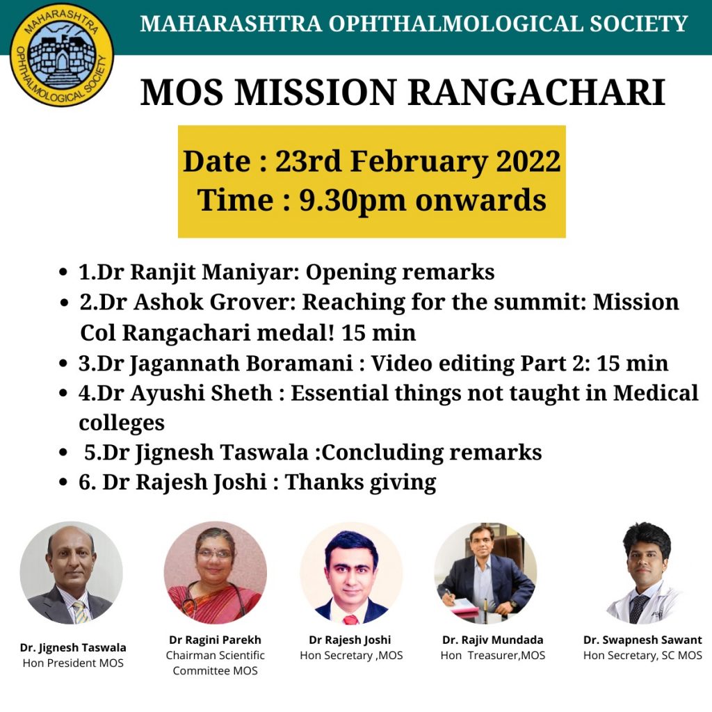 BECOME A MEMBER Member Profile Update Newsletter Constitution & Bye Laws Webinars Past Webinars FIRECRACKERS INJURY AWARENESS PATIENT EDUCATION MOPS MOS JOURNALS Firecrackers Injury Awareness Patient Education MOPS MOSCON 2023 Certificates Member Profile Update Become a Member MOS Journals Constitution & Bye Laws 23/Feb/2022 : Mission Rangachari session Home > Pages > Events > MOS Activities – 2021-22 > 23/Feb/2022 : Mission Rangachari session