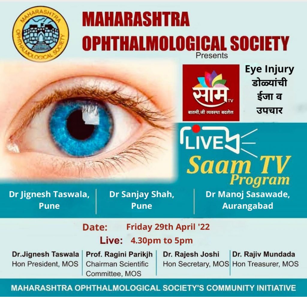 BECOME A MEMBER Member Profile Update Newsletter Constitution & Bye Laws Webinars Past Webinars FIRECRACKERS INJURY AWARENESS PATIENT EDUCATION MOPS MOS JOURNALS Firecrackers Injury Awareness Patient Education MOPS MOSCON 2023 Certificates Member Profile Update Become a Member MOS Journals Constitution & Bye Laws 29/Apr/2022: SAAM TV Program on Eye Injury Home > Pages > Events > MOS Activities – 2021-22 > 29/Apr/2022: SAAM TV Program on Eye Injury