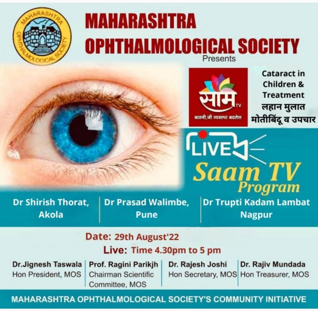 BECOME A MEMBER Member Profile Update Newsletter Constitution & Bye Laws Webinars Past Webinars FIRECRACKERS INJURY AWARENESS PATIENT EDUCATION MOPS MOS JOURNALS Firecrackers Injury Awareness Patient Education MOPS MOSCON 2023 Certificates Member Profile Update Become a Member MOS Journals Constitution & Bye Laws 29/Aug/2022: SAAM TV Program on Cataract in Children & Treatment Home > Pages > Events > MOS Activities – 2021-22 > 29/Aug/2022: SAAM TV Program on Cataract in Children & Treatment