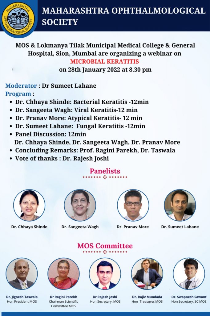 BECOME A MEMBER Member Profile Update Newsletter Constitution & Bye Laws Webinars Past Webinars FIRECRACKERS INJURY AWARENESS PATIENT EDUCATION MOPS MOS JOURNALS Firecrackers Injury Awareness Patient Education MOPS MOSCON 2023 Certificates Member Profile Update Become a Member MOS Journals Constitution & Bye Laws MOS and LTMMC, Sion , Webinar on Microbial keratitis on 28/1/22 Home > Pages > Events > MOS Activities – 2021-22 > MOS and LTMMC, Sion , Webinar on Microbial keratitis on 28/1/22