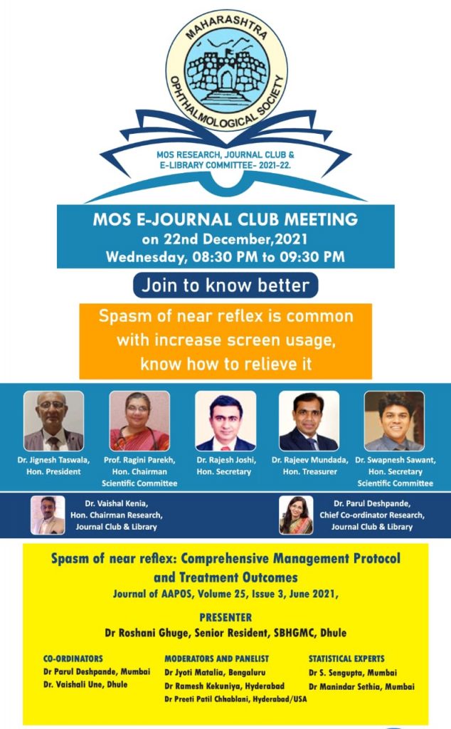 BECOME A MEMBER Member Profile Update Newsletter Constitution & Bye Laws Webinars Past Webinars FIRECRACKERS INJURY AWARENESS PATIENT EDUCATION MOPS MOS JOURNALS Firecrackers Injury Awareness Patient Education MOPS MOSCON 2023 Certificates Member Profile Update Become a Member MOS Journals Constitution & Bye Laws MOS E journal club on 22/12/21 Home > Pages > Events > MOS Activities – 2021-22 > MOS E journal club on 22/12/21 Click here to watch the video
