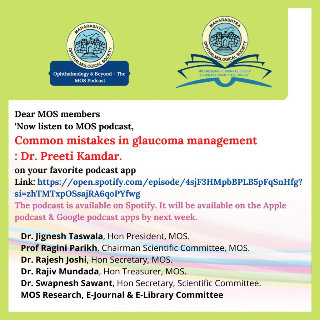 BECOME A MEMBER Member Profile Update Newsletter Constitution & Bye Laws Webinars Past Webinars FIRECRACKERS INJURY AWARENESS PATIENT EDUCATION MOPS MOS JOURNALS Firecrackers Injury Awareness Patient Education MOPS MOSCON 2023 Certificates Member Profile Update Become a Member MOS Journals Constitution & Bye Laws MOS PODCAST 2nd episode on “Common mistakes in Glaucoma Management” Home > Pages > Events > MOS Activities – 2021-22 > MOS PODCAST 2nd episode on “Common mistakes in Glaucoma Management”