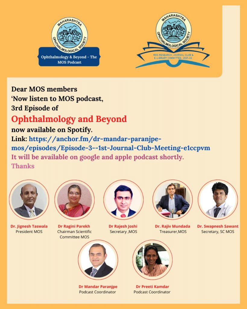 BECOME A MEMBER Member Profile Update Newsletter Constitution & Bye Laws Webinars Past Webinars FIRECRACKERS INJURY AWARENESS PATIENT EDUCATION MOPS MOS JOURNALS Firecrackers Injury Awareness Patient Education MOPS MOSCON 2023 Certificates Member Profile Update Become a Member MOS Journals Constitution & Bye Laws MOS PODCAST 3rd episode on Common mistakes in glaucoma management released on 1/1/22 Home > Pages > Events > MOS Activities – 2021-22 > MOS PODCAST 3rd episode on Common mistakes in glaucoma management released on 1/1/22